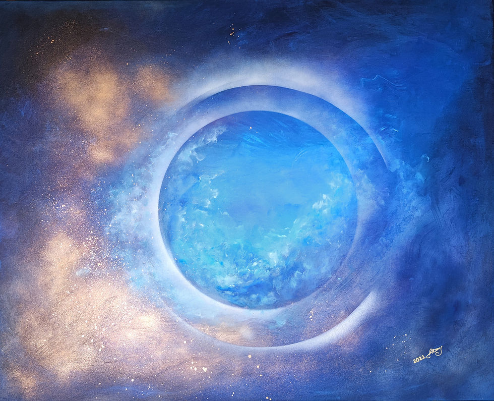 Niebieska przestrzeń, to miejsce, gdzie kolor staje się metaforą nieograniczonego potencjału, tajemniczych zakątków wszechświata i spokoju.